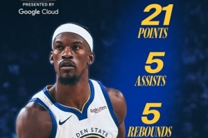 太稳了!勇士官方晒本场最佳球员数据海报:巴特勒21+5+5