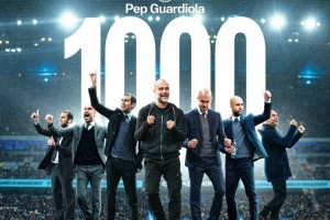 曼城官方社媒晒出瓜迪奥拉执教生涯1000场里程碑海报,配文:“瓜迪奥拉将在对阵利物浦的比赛中迎来辉煌执教生涯的1000场比赛。”