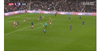 阿森纳进攻,特罗萨德禁区前盘带过掉对手后打出一记精彩的世界波,罗夫斯望球莫及!