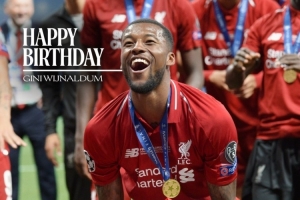 利物浦官方社媒晒出维纳尔杜姆与欧冠奖杯的合照,配文:“生日快乐,吉尼!”