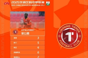 体育资讯11月12日讯 上演帽子戏法的辽宁铁人球员安以恩,当选为中甲联赛第30轮最佳球员。