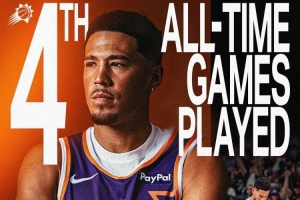 此役,布克首发。据统计,这是布克太阳生涯第686场比赛,超越迪克·范阿斯代尔(685),升至队史第4多。