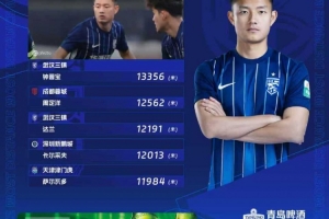 体育资讯11月24日讯 中超第30轮跑动榜公布,其中武汉三镇两将入选,钟晋宝位列榜首,蓉城队长周定洋列次席。