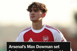 体育资讯12月10日讯 据TA记者奥恩斯坦消息,15岁阿森纳小将道曼脚踝韧带受伤,将伤缺2个月。
