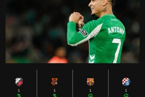 体育资讯12月12日讯 贝蒂斯在本轮欧联3-1击败萨格勒布迪纳摩,安东尼打进一球。