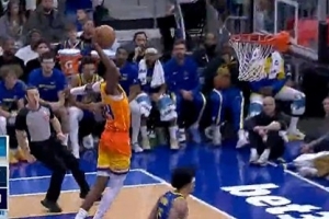 状态不错!加兰不看人妙传小莫布里暴扣 随后追身三分再进!