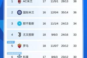 体育资讯01月04日讯 意甲最新积分榜如下: