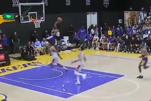 GIF-布朗尼抢断快攻反击一条龙暴扣 有点像父亲詹姆斯了
