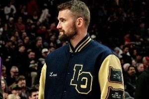 乐福这件夹克大有来头,这是一件以他高中母校Lake Oswego为主题的定制夹克,“LO”为校名缩写,右侧胸前有他啊的名字,2007则是他的毕业年份,背面图案则是球队Logo吉祥物。
