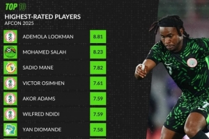 体育资讯1月7日讯 非洲杯已经战至八强,whoscored也统计了本届赛事至今评分榜,尼日利亚4将入围。