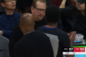 想啥呢?兰德尔表情古怪 神情“着迷”地上下来回扫视文班全身!