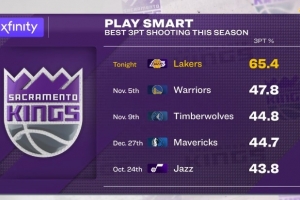 国王赛季三分命中率前五场次: