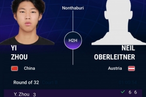 接下来周意将对阵朗莫,后者以7-6(5) 6-2击败另一位中国选手崔杰。