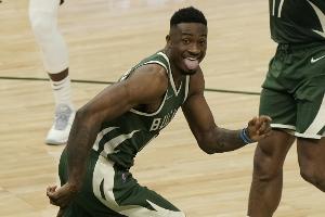 GIF-字母哥哥空切篮下 无人盯防轻松上演双手扣篮
