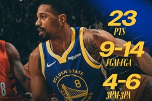 本场比赛,勇士球员梅尔顿,他替补出战仅18分钟,14中9,三分6中4,罚球1中1怒轰23分2篮板1助攻,正负值+20!