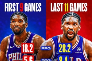 而近11场出场的比赛,场均28.2.分8.4篮板3.5助攻,投篮命中率51.5%,真实命中率61.6%。