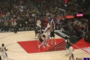 GIF-詹姆斯突破差点骑扣克莱伯 起跳高度不够