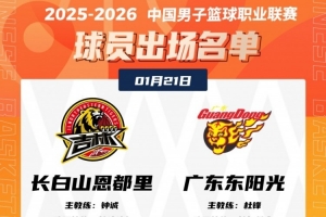 体育资讯1月21日讯 今晚19:35,吉林将在主场迎战广东,赛前大名单出炉。