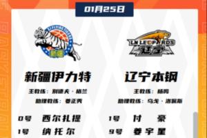 体育资讯1月25日讯 今晚20:00,CBA常规赛新疆主场迎战辽宁。赛前双方公布了本场大名单。