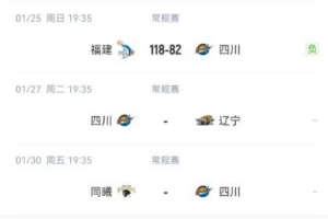 体育资讯1月25日讯 CBA常规赛,四川82-118不敌福建。