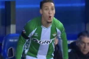 体育资讯1月28日讯 西甲第21轮,皇家贝蒂斯客场1-2不敌阿拉维斯,安东尼第59分钟被换下后暴怒!离场后一脚踹向衣物包,嘴里还喷着脏话。