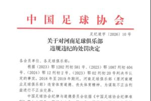 关于对河南足球俱乐部违规违纪的处罚决定