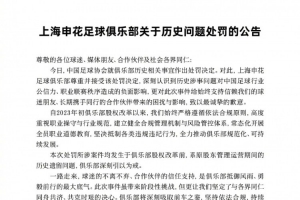 在公告中,申花俱乐部写道:本次处罚所涉案件均发生于俱乐部股权改革前,系原股东管理运营期间的历史遗留问题,俱乐部深刻引以为戒。