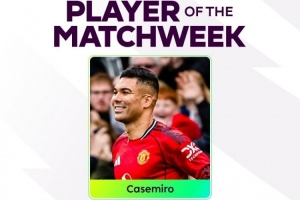此役卡塞米罗贡献传射,帮助曼联取胜,英超官方宣布,卡塞米罗当选第24轮最佳球员。