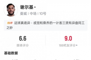 体育资讯2月9日讯 英超第25轮焦点战,曼城客场2-1逆转利物浦。谢尔基替补登场,1粒进球被吹,贡献2次抢断,3次地面对抗成功,1次争顶成功,评分6.6。