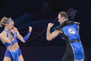 表演过程中,两人复刻了大量游戏经典名场面:梅特尔基娜在完成长时间旋转动作后,以眩晕状态定格,完美还原了《真人快打》格斗环节中的标志性场景;而贝鲁拉瓦并未使用游戏中极具代表性的“终结技”,反而演绎了游戏里经典的“友谊技”,随后两人伴着斯潘道芭蕾舞团的经典曲目《True》,完成了第二段温情表演,形成了极具反差感的舞台效果。