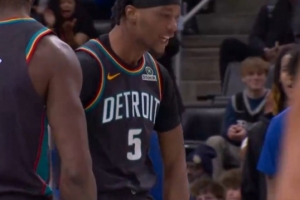 技犯!追梦被小贾撞翻 起身后抓了一下小贾的脚踝!