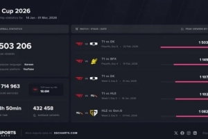 体育资讯3月3日讯 外媒统计LCK杯观众峰值排名前五的比赛,具体如下: