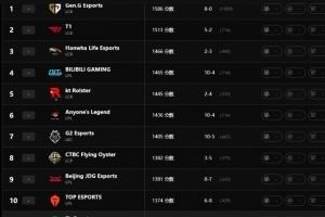 体育资讯3月10日讯 拳头官网更新世界赛战队实力排名,其中GEN第一,T1第二,HLE在未能晋级LCK CUP季后赛的情况下依旧第三。