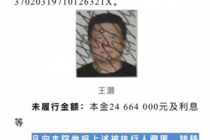 8月15日,山东青岛市市北区人民法院发布悬赏公告,被执行人名叫王灏,未履行金额为本金24664000元及利息等。凡向该法院举报上述被执行人藏匿、转移的财产线索(不含法院已掌握的线索),经查证属实并执行到位的,按实际执行到位金额的5%支付悬赏金。19日,极目新闻记者从该法院获悉,该被执行人是前国奥队门将、青岛海牛足球队前守门员王灏。