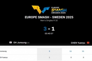 WTT欧洲大满贯瑞典站男单,陈垣宇8-11、8-11、11-9、9-11不敌韩国选手吴晙诚,止步32强。