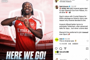 体育资讯8月21日讯 罗马诺在个人社媒上宣布,阿森纳签埃泽达协议,转会费超6000万镑,Here We Go!马杜埃凯点赞了该条动态,这位阿森纳前锋以这种方式表达了对埃泽的欢迎。
