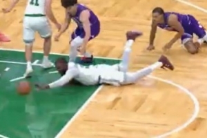 饿虎扑食!杰伦-布朗奋力拼抢地板球 助科塔博得罚球