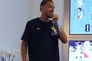 体育资讯9月4日讯 法国队官推晒出视频,国家队新人埃基蒂克和阿克利乌舍表演唱歌。