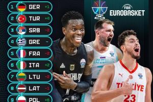 男篮欧锦赛小组赛阶段结束,FIBA官方给出了最新的实力榜,详情如下: