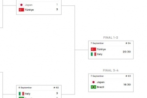 季军铜牌战将在9月7日的16点30分进行,日本VS巴西,决赛金牌战将在20点30分进行,意大利VS土耳其。