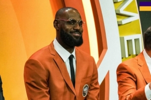 湖人官方Instagram晒出詹姆斯在名人堂现场的照片写道:“勒布朗-詹姆斯作为‘救赎之队’的一员入选名人堂。”