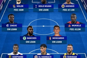 前锋:索莱尔(皇家社会,600万)、穆阿尼(热刺,外租)、阿森西奥(费内巴切,750万)