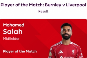 本场比赛萨拉赫在补时阶段打进点球绝杀,赛后也当选英超官方球迷票选全场最佳球员。