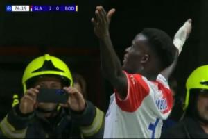 布拉格2-0领先博德闪耀!随后庆祝过程中布拉格主场的消防员也忍不住为这位梅开二度的功臣拍照!