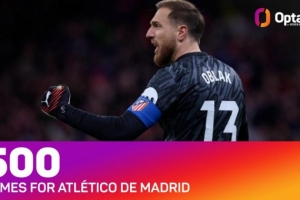 奥布拉克迎来马竞生涯500场里程碑之战,是俱乐部历史首位实现如此成就的门将,他的出场次数仅次于科克(若本场出战为688场)和阿德拉尔多(550场)。