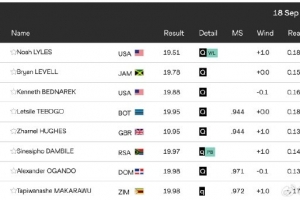体育资讯9月18日讯 田径世锦赛男子200米半决赛,莱尔斯跑出男子200米赛季最佳成绩。
