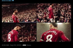B费晒出自己的赛场照,并配文:重要的结果和表现!很高兴达成个人英超200场和曼联100球。