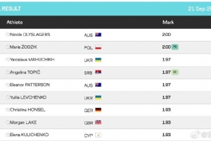 体育资讯9月21日讯 田径世锦赛结束女子跳高决赛争夺,澳大利亚选手奥利斯拉格斯凭借过2.00米一次过夺得金牌。
