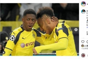 奥巴梅扬社媒晒出与登贝莱效力多特、巴萨时期的多张合照,配文:“兄弟,我有太多照片要发了!感谢你成为现在的自己🙏🏽实至名归❤️🤝🏽也恭喜你,穆斯 (登贝莱好友)🤲🏽抱歉发了最后一张照片🤣🤣”