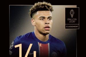 体育资讯09月23日讯 2025年金球奖颁奖典礼今天凌晨进行,巴黎的20岁小将杜埃虽然没有拿回什么大奖,但他取得的成绩已经足够优秀。